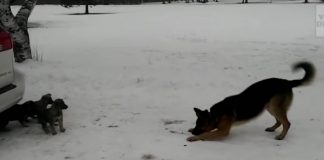 Nešto najslađe što ćete danas vidjeti: Tata vučjak igra se sa svojim mališanima na snijegu (VIDEO)