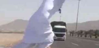 Jedan muškarac uhapšen je nakon što je snimljen kako skače ispred kamiona koji se velikom brzinom vozio na prometnoj cesti. Idiotski potez muškarca primorao...